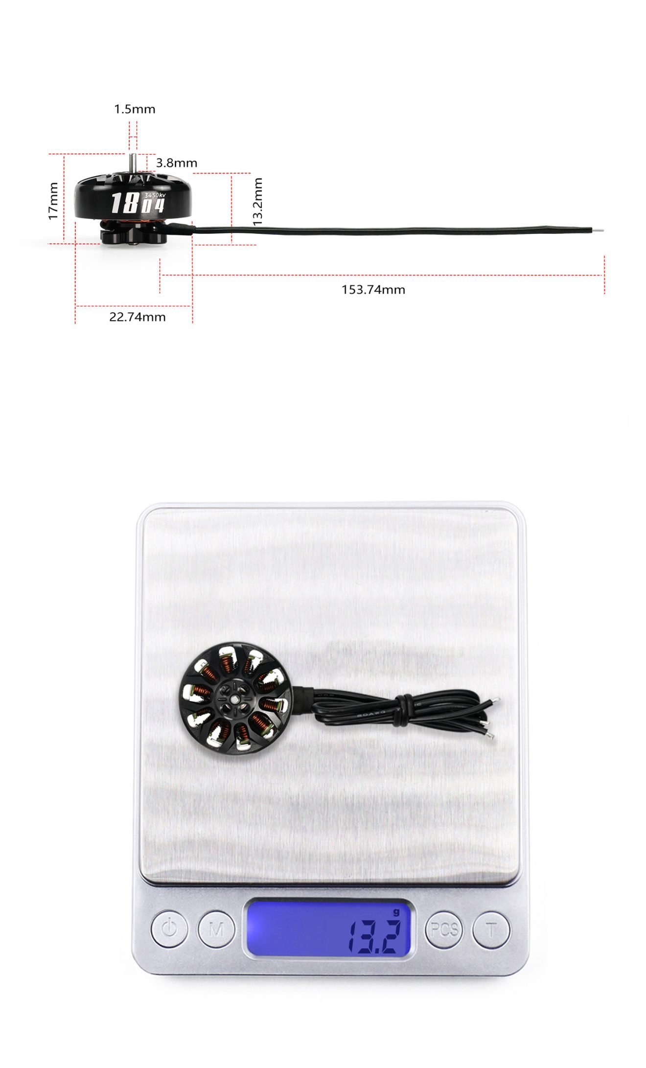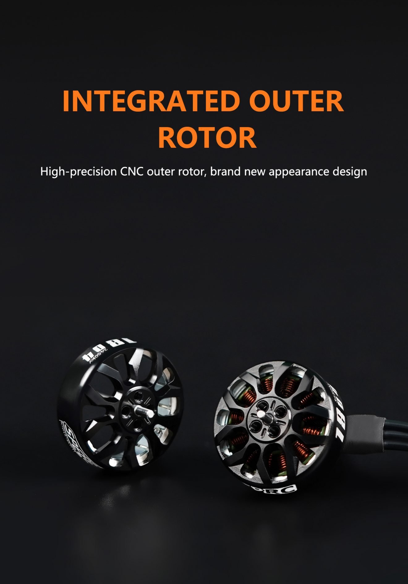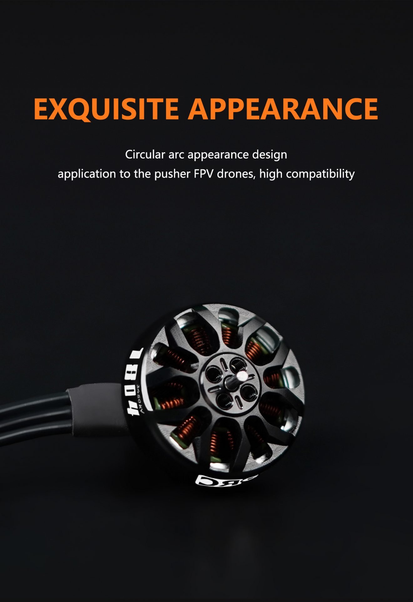 Thanks to its ultra-lightweight construction, the motor weighs only 13.2g (with 13cm wire), making it ideal for weight-sensitive builds. The rounded arc design ensures high compatibility with pusher-style FPV drones, preventing imbalance caused by contact between large-pitch propellers and the motor top. With an extensive hollowed-out structure, the motor reduces unnecessary weight while enhancing cooling efficiency and maintaining stable operating temperatures.