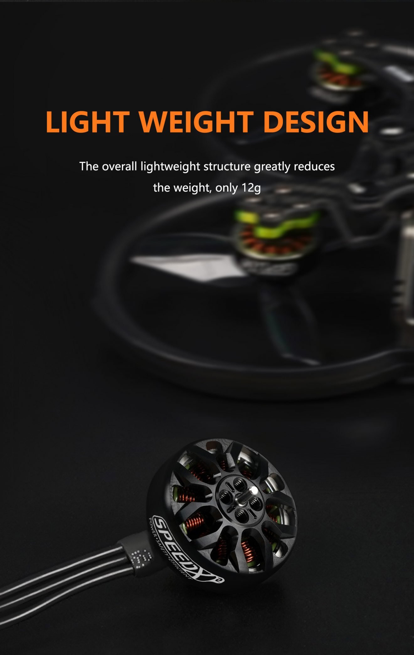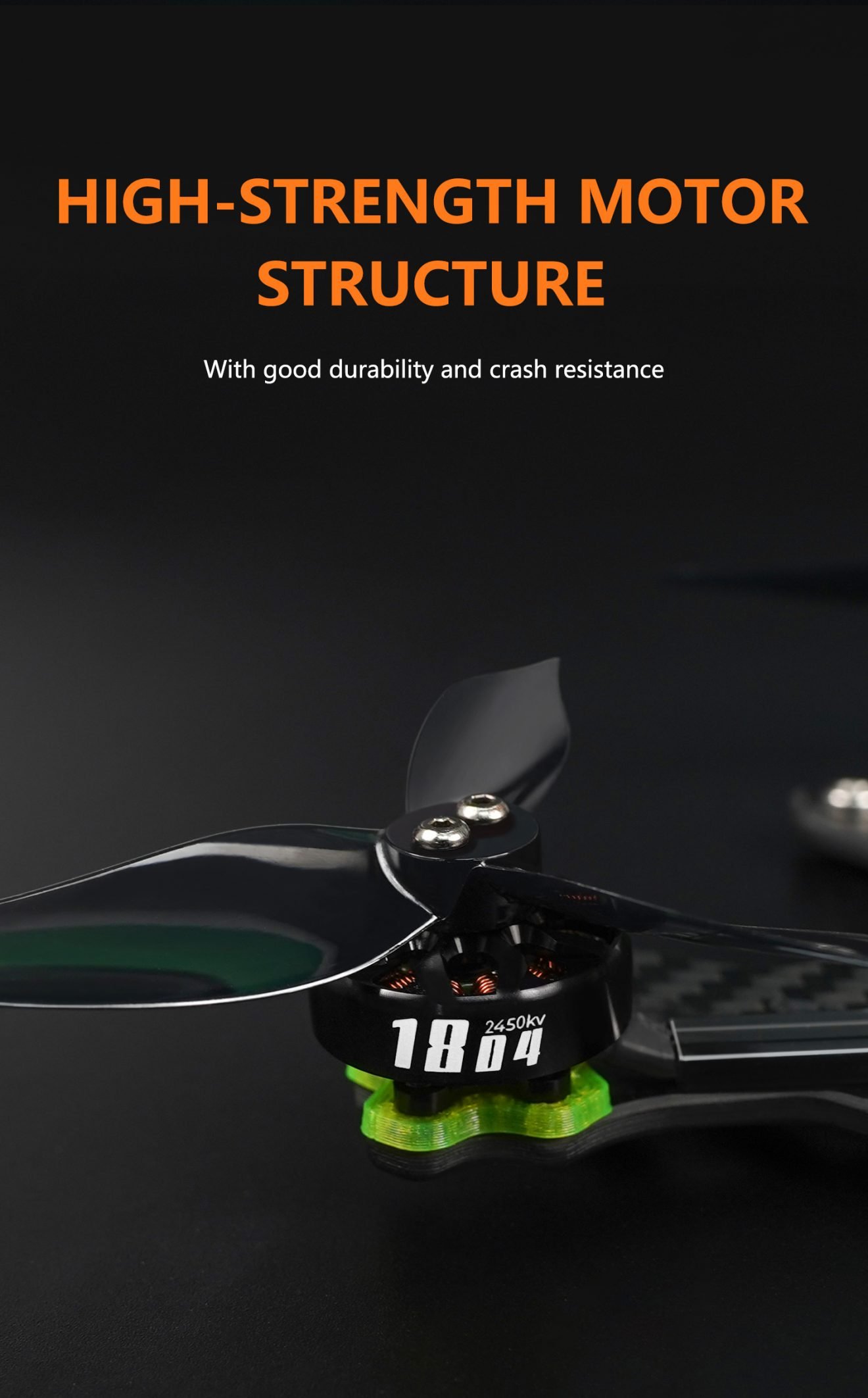 Constructed from premium 7075 aviation-grade aluminum, the rotor achieves excellent strength and durability. The highly optimized magnetic circuit provides exceptional torque, rapid response, and smooth explosive power for an unmatched flying experience. Perfectly suited for 3-inch whoop FPVs, 3–4 inch Toothpicks, and long-range FPV drones, the SPEEDX2 1804 strikes a balance of lightweight design, reliability, and performance.