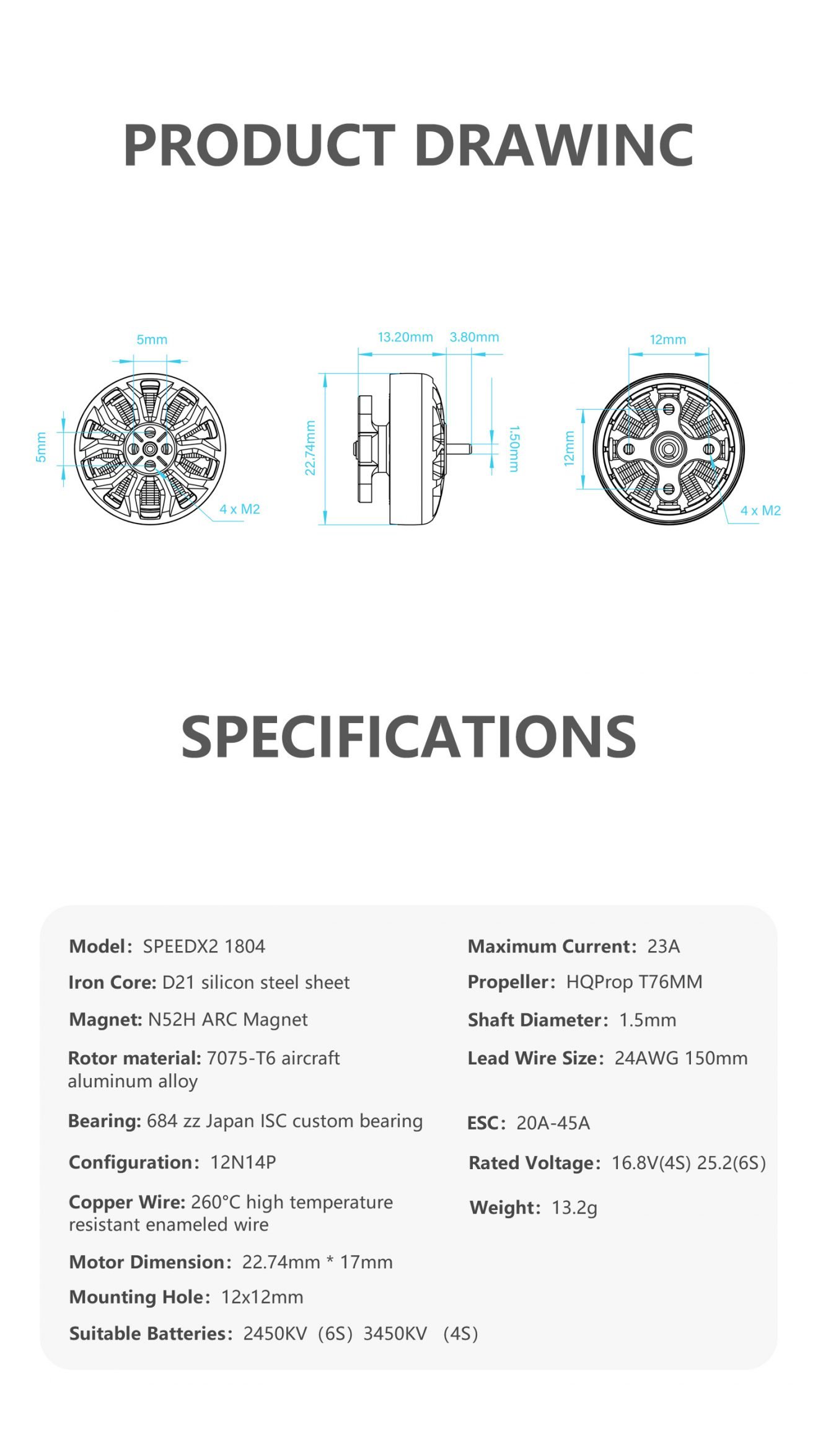 We are excited to present the second generation of the SPEEDX2 1804 brushless motor, designed with an all-new structure and a refined appearance.