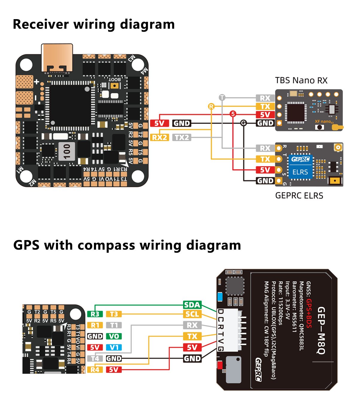 5 UART ports for connecting GPS, receivers, VTX, and other peripherals.
