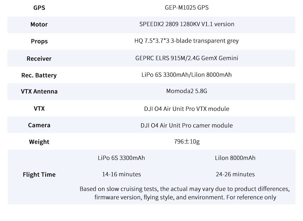 Jul 19, 2025: Motor upgraded from GEPRC SPEEDX2 2809 V1.1 1450KV to GEPRC SPEEDX2 2809 V1.1 1280KV for better endurance.