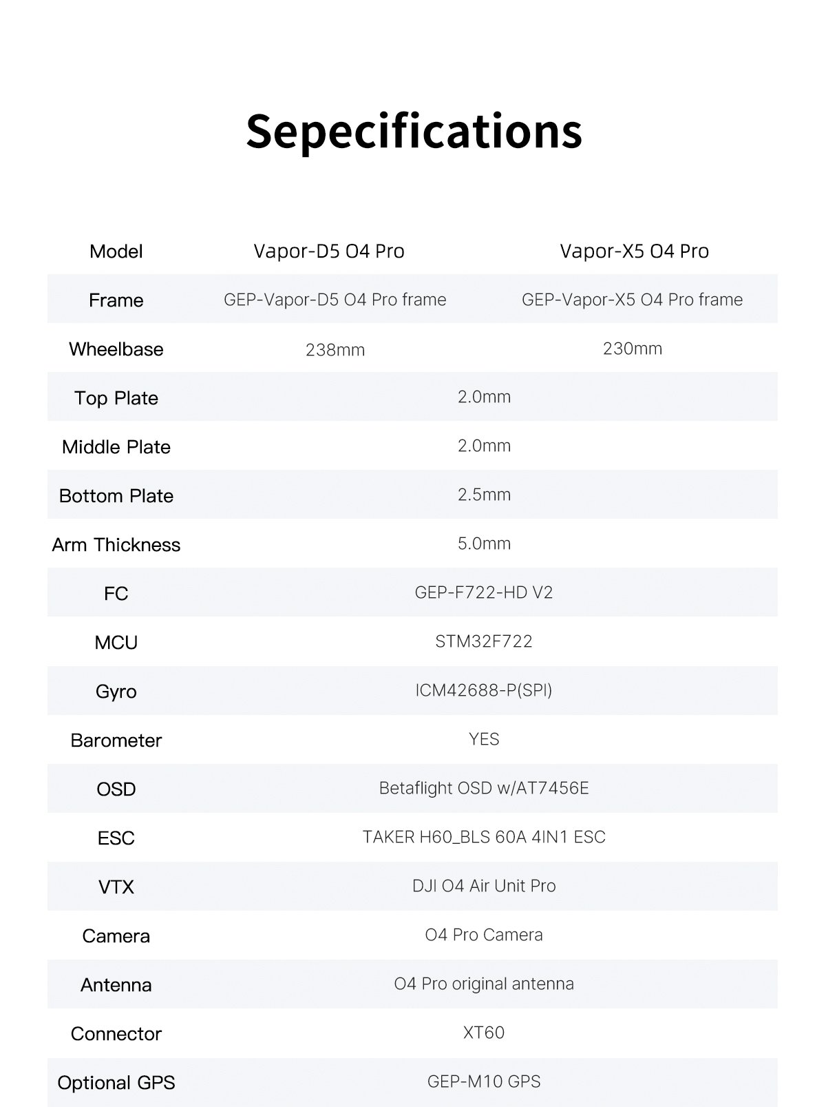 The GEPRC team has redesigned the Vapor series for perfect compatibility with the DJI O4 Air Unit Pro VTX.