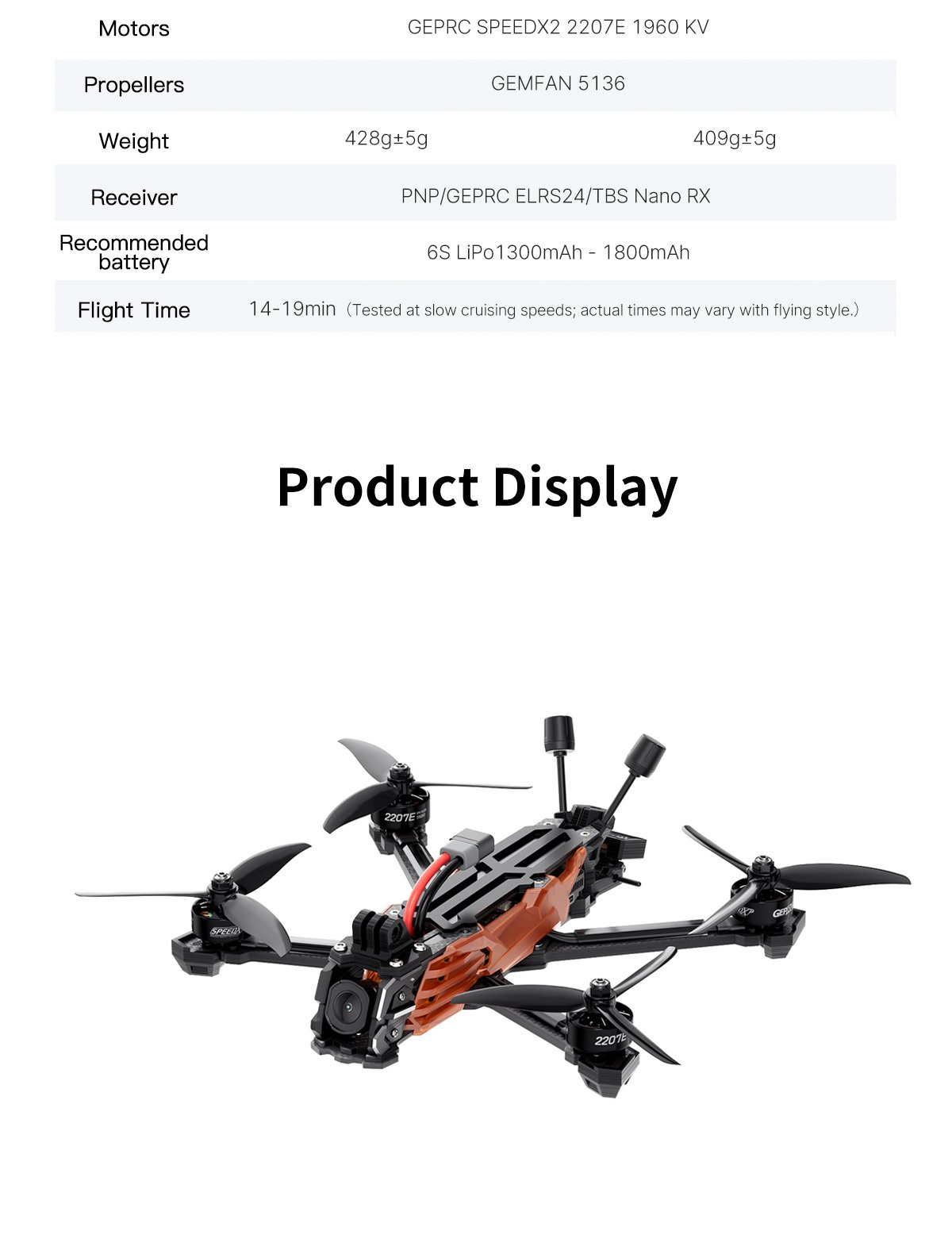 Equipped with GEPRC SPEEDX2 E-series motors for powerful and stable performance.